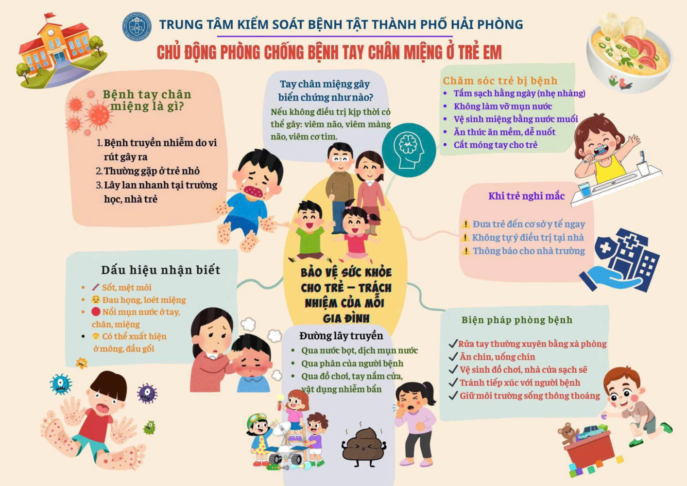 Tay chân miệng thường tự khỏi sau 7–10 ngày, nhưng trong giai đoạn bệnh trẻ nên nghỉ học, tránh lây cho trẻ khác.