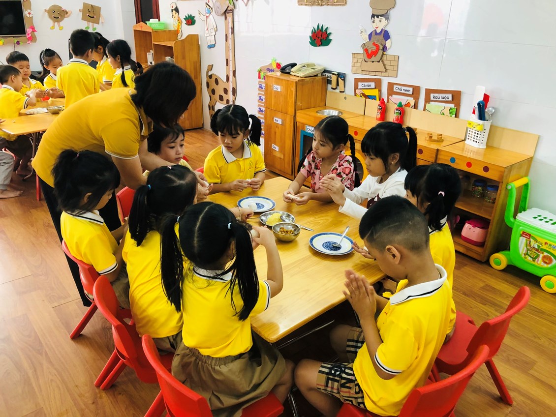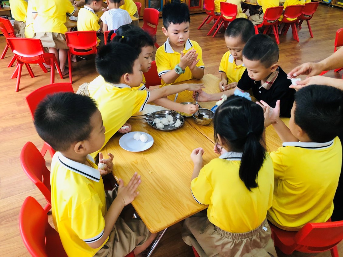 Hoạt động ý nghĩa tiếp theo để chào mừng là hoạt động trải nghiệm “ Bé tập làm nội trợ” , Bé khéo tay được tổ chức vào sáng ngày 16 tháng 10 . Thông qua các hoạt động này trẻ được trải nghiệm “ Bé tập làm nội trợ”, được nặn các loại bánh bánh trôi và được thưởng thức các sản phẩm do mình làm ra… bằng đôi bàn tay của mình, trẻ biết được tình cảm của bà, mẹ, cô giáo dành cho mình, trẻ cũng biết được ý nghĩa ngày 20/10. Đây cũng là cơ hội rèn kỹ năng sống cho trẻ giúp trẻ mạnh dạn tự tin hơn trong các hoạt động hàng ngày.