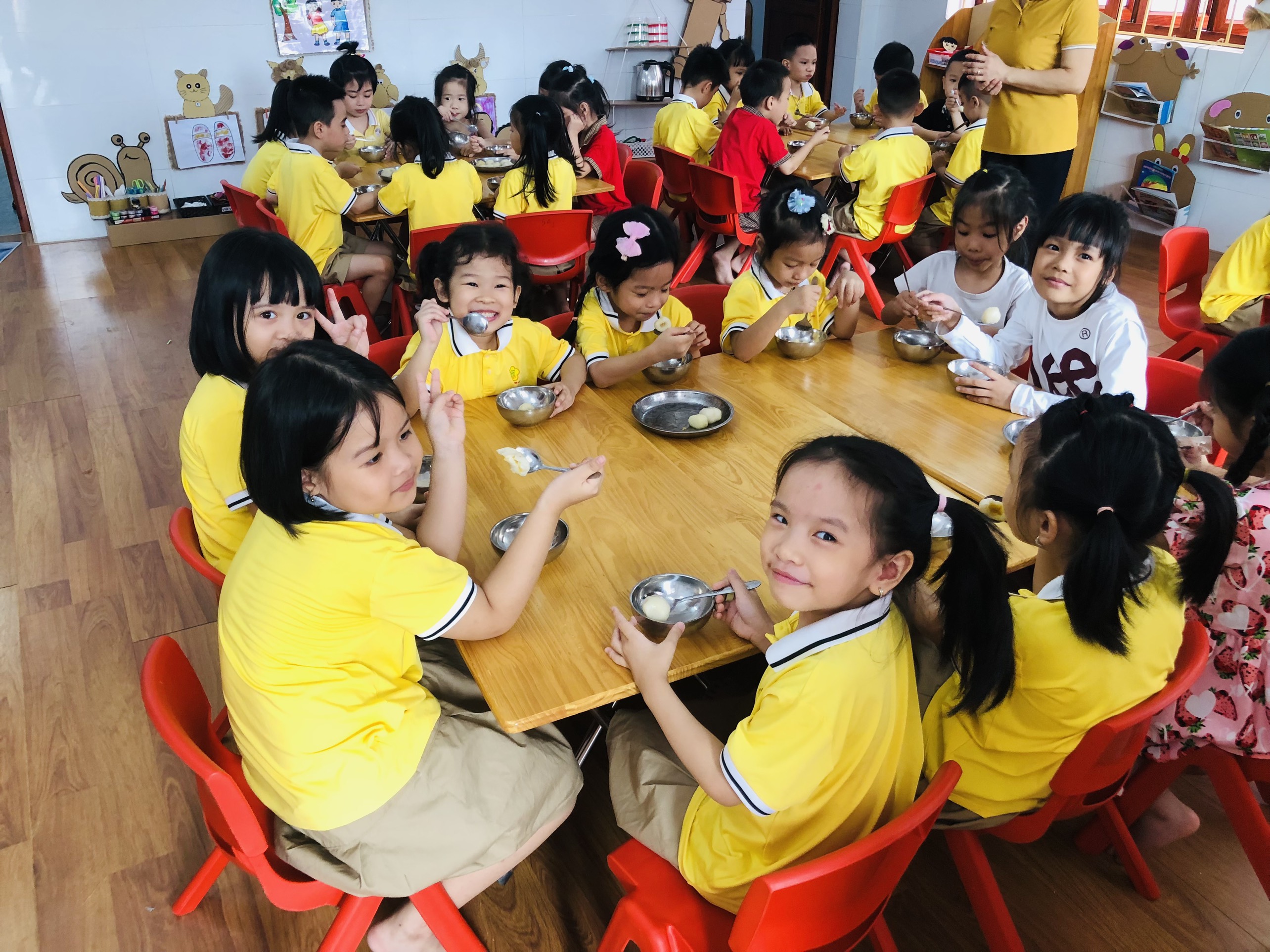 Mở đầu cho chuỗi các hoạt động chào mừng là phong trào “Đăng ký các tiết dạy tốt chào mừng ngày 20 tháng 10”. Các tiết dạy được các cô giáo chuẩn bị đầy đủ từ giáo án đến đồ dùng, phương tiện dạy học theo quan điểm “ Lấy trẻ làm trung tâm”, cô đổi mới sáng tạo, trẻ tích cực chủ động, trẻ được trải nghiệm tìm tòi, khám phá môi trường xung quanh dưới nhiều hình thức đa dạng, đáp ứng nhu cầu hứng thú của trẻ theo phương châm “ Học mà chơi chơi mà học”. Các tiết dạy phong phú về hoạt động và thể loại tiết dạy : Từ thơ , truyện , âm nhạc, thể dục cho đến rèn kỹ năng sống, lao động ….Hình thức lên lớp có nhiều thay đổi gây được hứng thú cho trẻ khi tham gia các hoạt động.