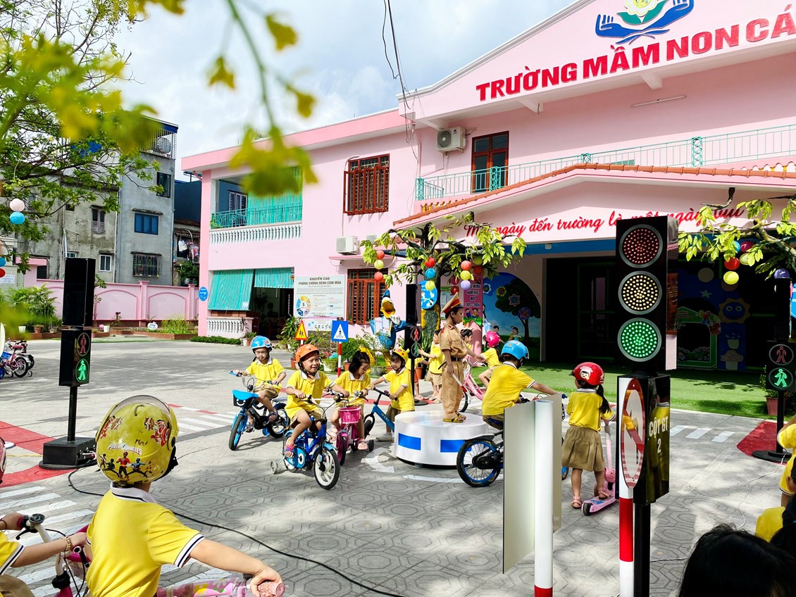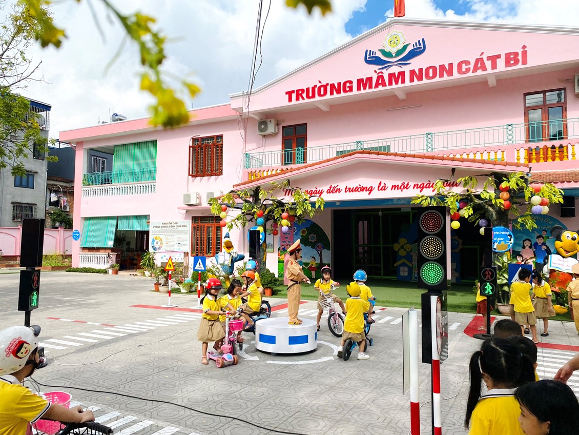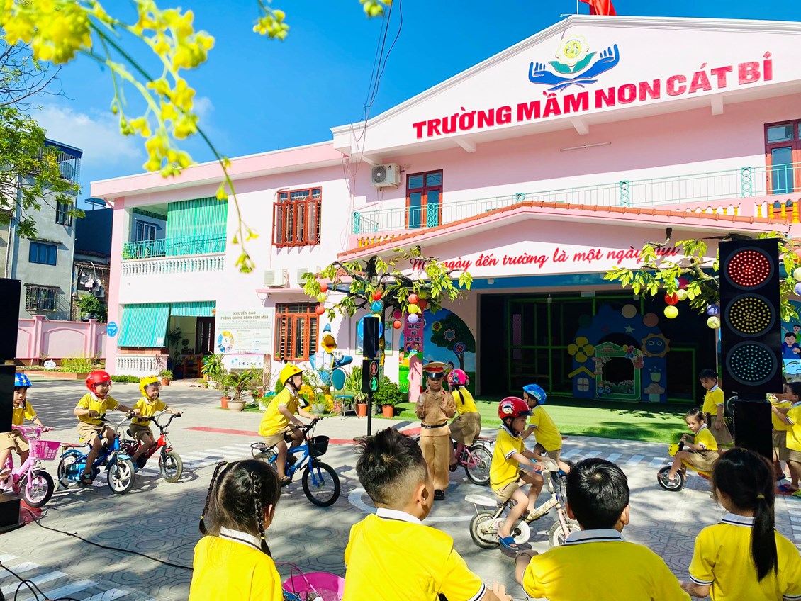 Thực hiện nhiệm vụ chuyên môn năm học 2023- 2024. Nhằm tạo ra một sân chơi vui vẻ, bổ ích cho trẻ. Trường mầm non Cát Bi đã tăng cường tổ chức các hoạt động trải nghiệm cho trẻ, đặc biệt là hoạt động trải nghiệm "Bé với an toàn giao thông". Qua sân chơi này giúp trẻ có hiểu biết về phương tiện giao thông, luật giao thông cũng như kỹ năng khi tham gia giao thông, đồng thời trang bị tốt kiến thức chấp hành an toàn giao thông khi còn nhỏ tạo bước chuyển cực kỳ quan trọng trong việc hình thành “Văn hoá giao thông”