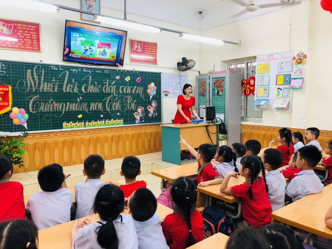 Đến trường Tiểu học Cát Bi các bé được giao lưu văn nghệ, trò chuyện với giáo viên dạy lớp 1, được cô giáo giới thiệu về trường tiểu học, về lớp 1, về đồ dùng học tập và các hoạt động học tập ở trường tiểu học khác với ở trường mầm non như thế nào. Qua đó giúp cho trẻ có thêm hiểu biết về trường tiểu học và các hoạt động học tập của học sinh tiểu học, tạo cho trẻ tâm thế sẵn sàng bước vào lớp 1. Chuyến tham quan giúp trẻ mở rộng vốn hiểu biết về trường Tiểu học, môi trường học tập của học sinh lớp 1. Qua quan sát, trao đổi của cô giáo trẻ thấy được sự khác nhau giữa việc học của lớp 1 với lớp mẫu giáo để trẻ có tâm thế sẵn sàng cho việc chuẩn bị chuyển lên cấp học mới trong thời gian sắp tới. Hoạt động này còn được sự quan tâm, ủng hộ của phụ huynh lớp 5 tuổi, giúp phụ huynh hiểu được tầm quan trọng và hiểu được cần phải kết hợp cùng các cô giáo chuẩn bị những điều kiện gì cho con bước vào lớp 1.