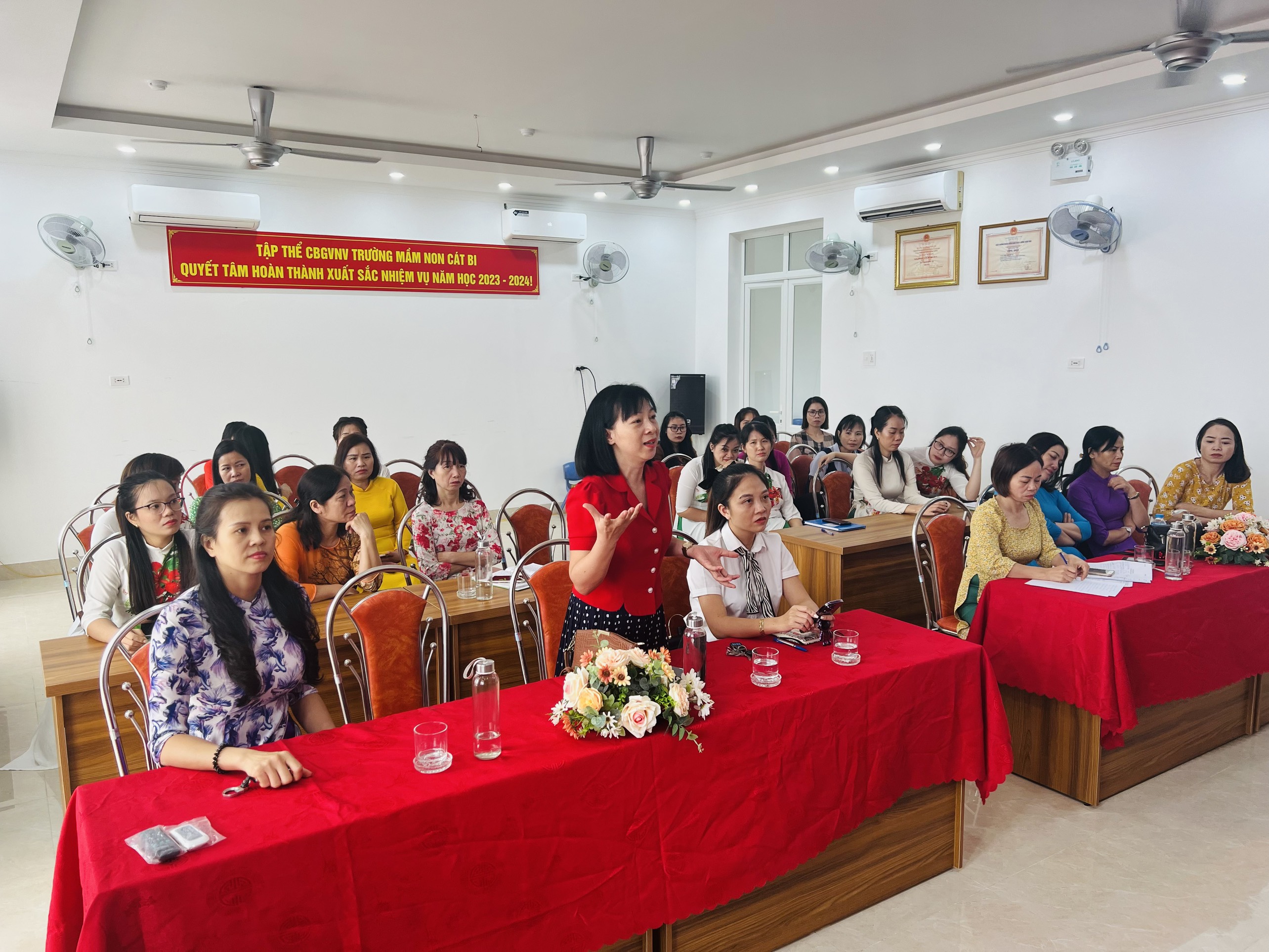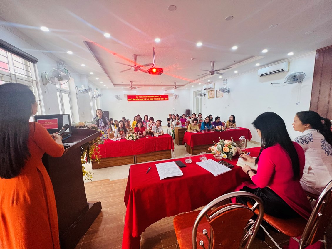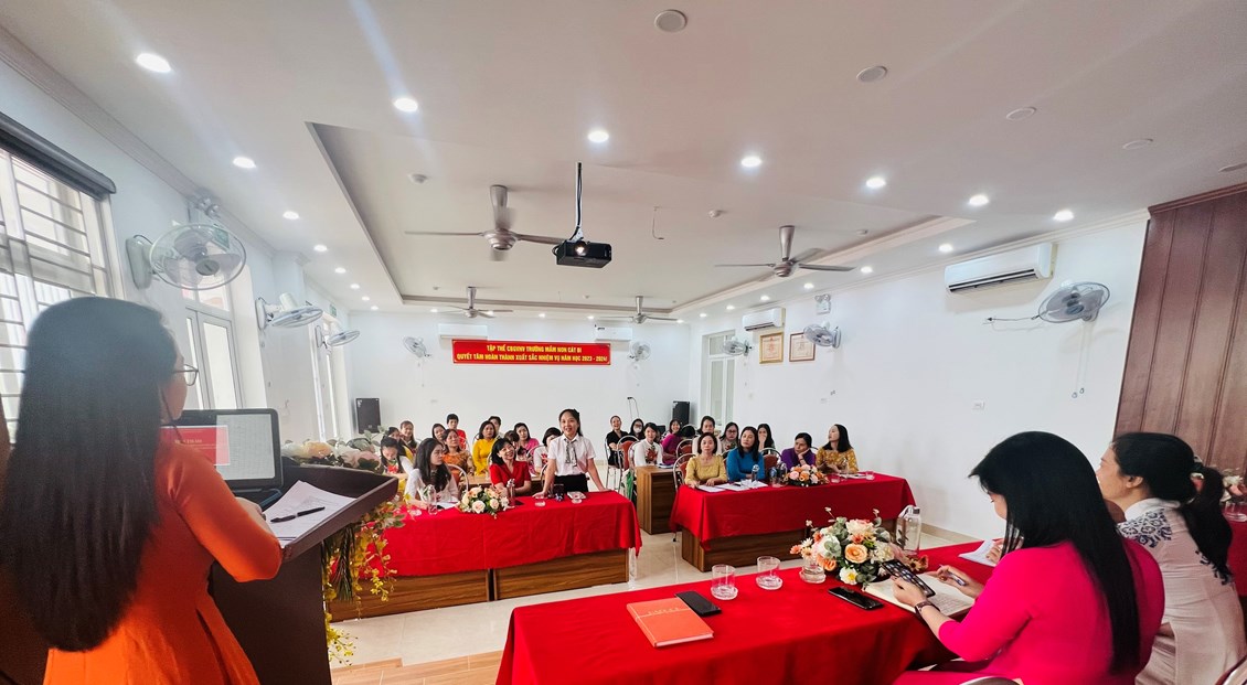 Chiều ngày 11/10/2023, trường mầm non Cát Bi tổ chức hội thảo:" Giảm áp lực cho giáo viên mầm non trong thực hiện nhiệm vụ chuyên môn"- Năm học 2023-2024. Thành phần hội nghị có:
