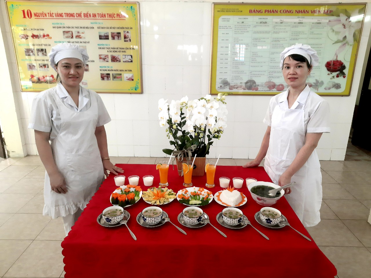 Mang đến Hội thi năm nay các đồng chí nhân viên nuôi dưỡng đã chế biến những món ăn giàu chất dinh dưỡng, đảm bảo an toàn vệ sinh thực phẩm và đặc biệt là cách trang trí món ăn vô cùng hấp dẫn và đẹp mắt.