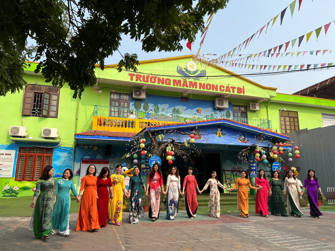 Hưởng ứng tuần lễ áo dài 2023, công đoàn trường MN Cát Bi chỉ đạo các đồng chí đoàn viên công đoàn hưởng ứng sự kiện bằng các hoạt động sáng tạo, thiết thực, cụ thể.