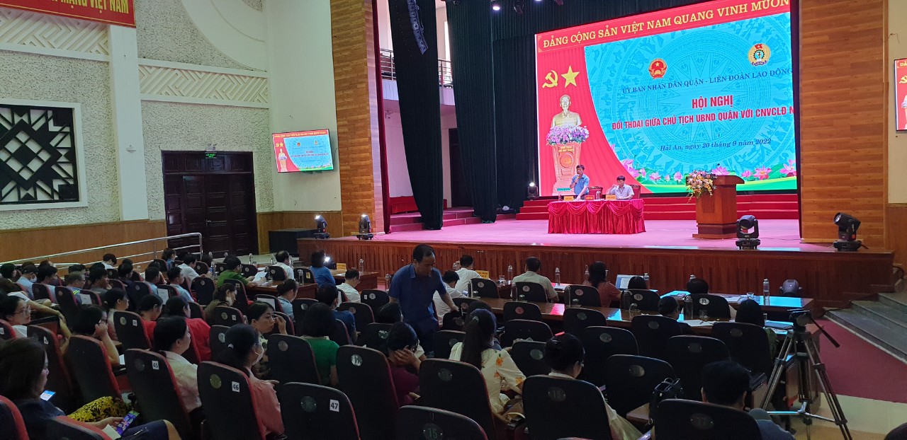 Ngày 20/9, Được sự đồng ý của Thường trực Liên đoàn lao động Thành phố, Thường trực quận uỷ và Chủ tịch UBND quận Hải An, Liên đoàn Lao động quận Hải An tổ chức Hội nghị gặp gỡ đối thoại giữa Chủ tịch UBND quận với CNVCLĐ quận năm 2022 với sự tham dự của viên chức, người lao động đang làm việc tại các đơn vị sự nghiệp.